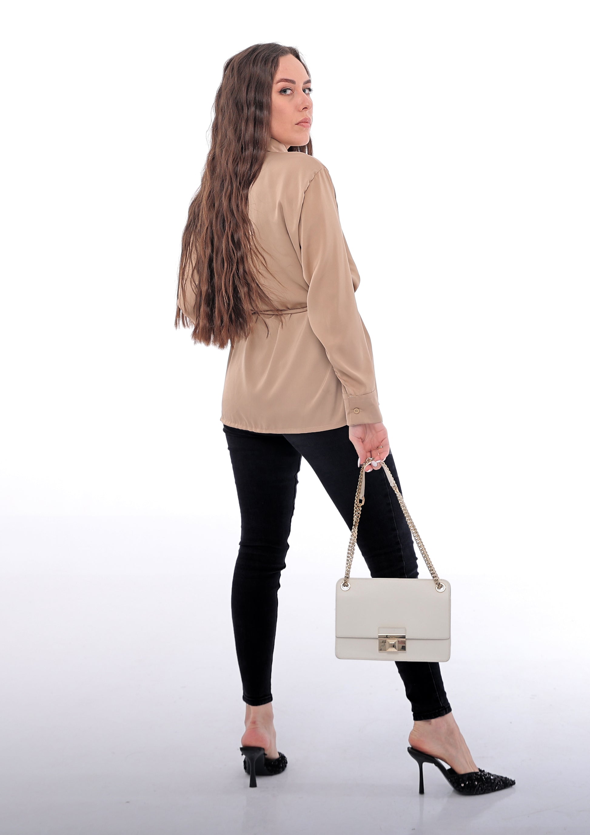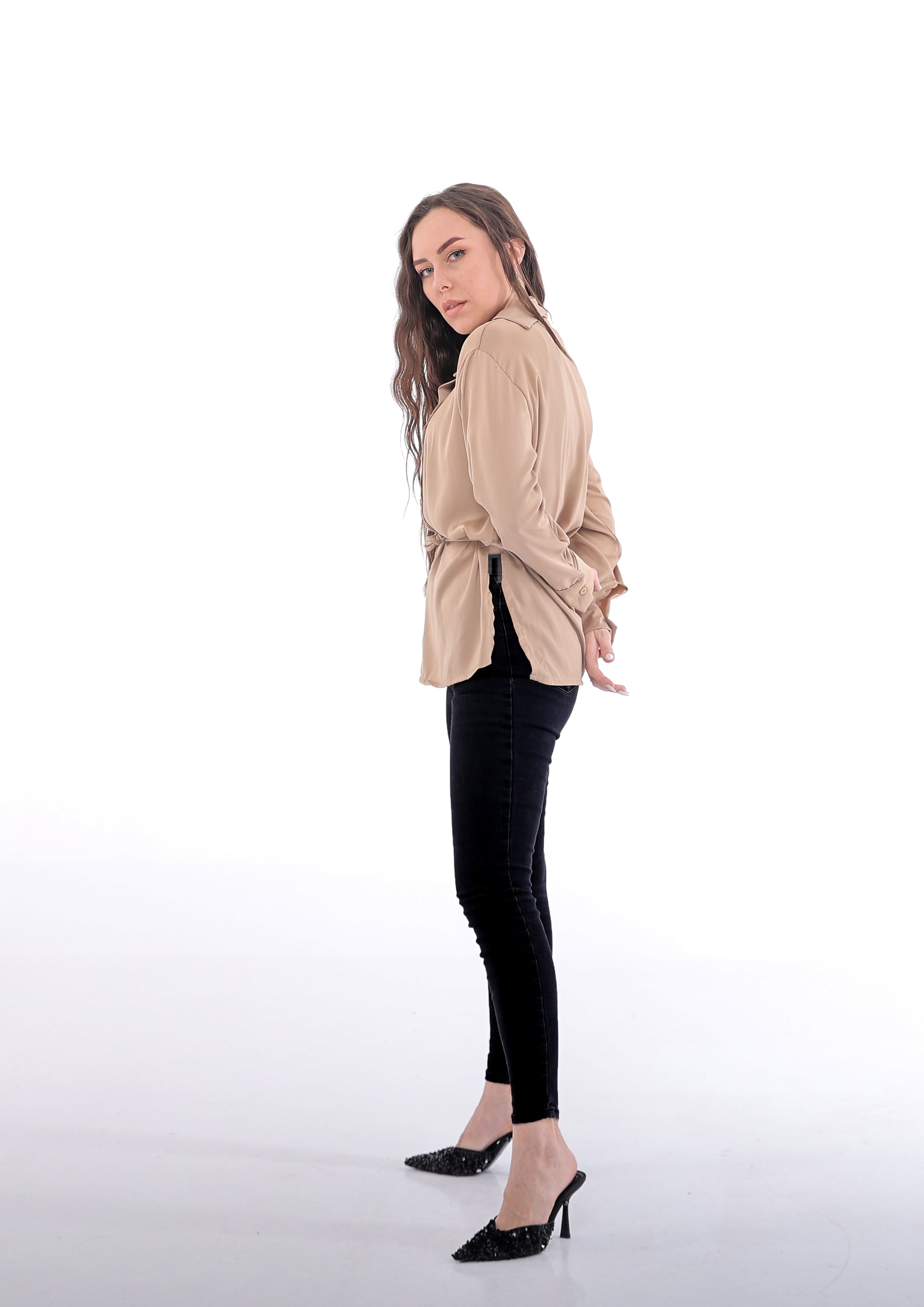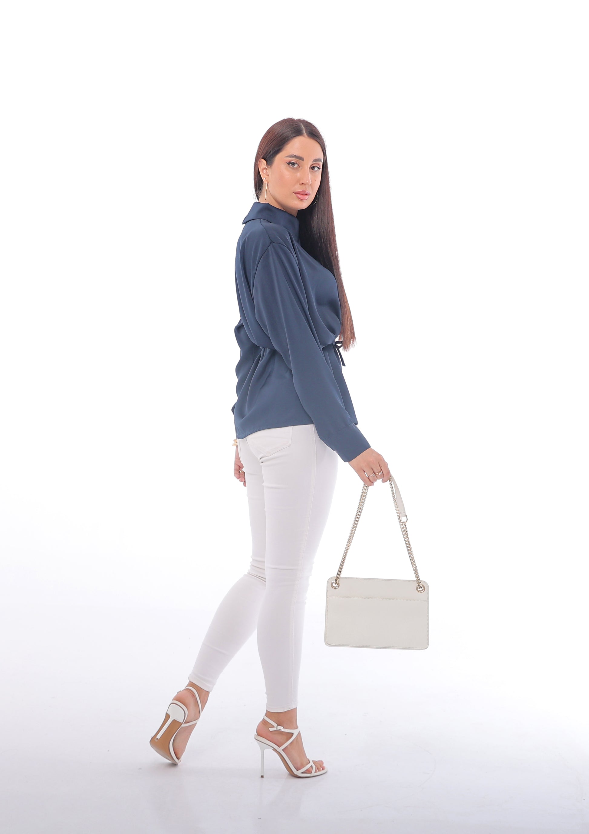 Elevating everyday elegance, The Eclipsed Collar blouse features a fluid satin finish, highlighted by its distinct inverted collar — bold yet softly contoured. Designed with a self-tie waist to gently frame the body, it flatters with effortless structure and understated femininity. Wear it as a statement on its own or layered with minimalist accents.